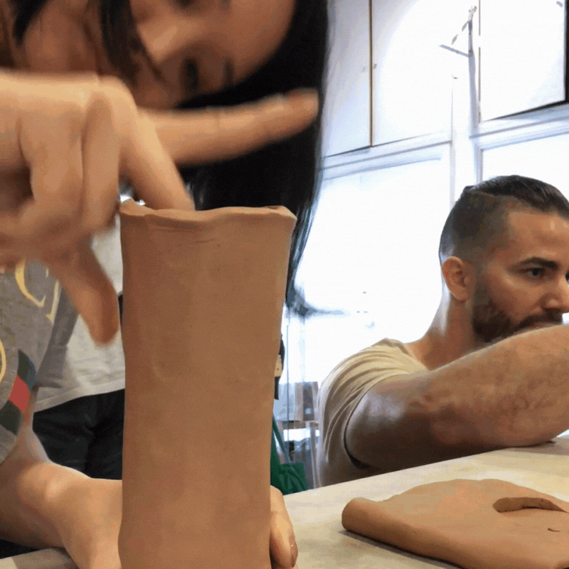 Being a shared experience, there will be other people who booked the workshop, but the vibes are casual and friendly. There are 3 large tables so you’ll be sharing your space with 4-5 other people. It’s hard to not have a good laugh when you’re struggling to make a clump of clay work!