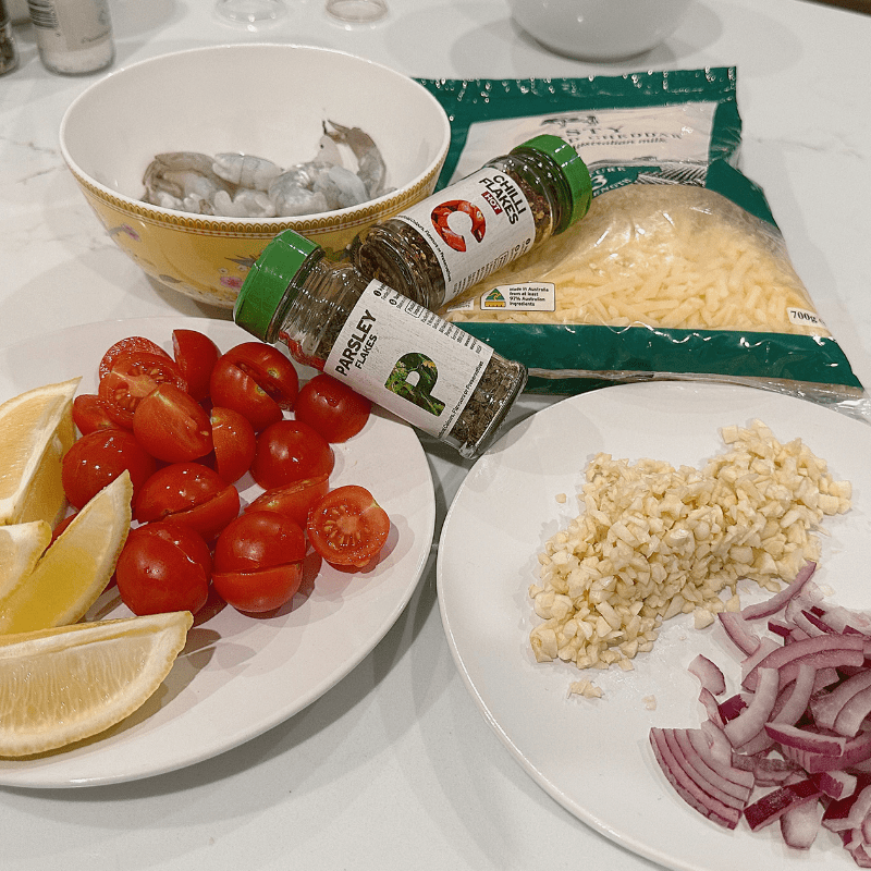 Check out my Reel or TikTok for a quick ASMR recap on how I made my garlic prawn pizzas.